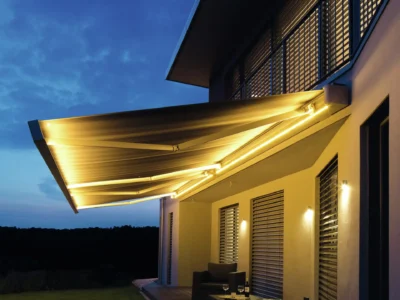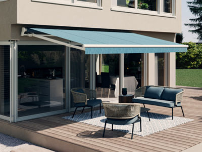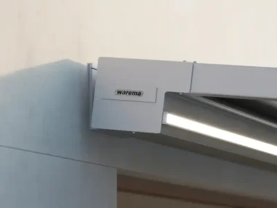 • Kaum sichtbar am Ausfallprofil der Markise montiert